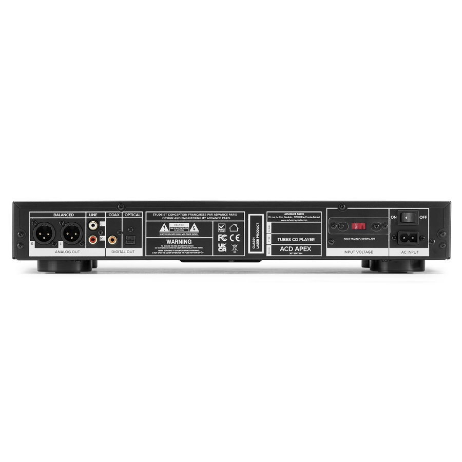 ADVANCE PARIS ACD APEX CD  ir ieturēts neo-retro stila līnijās, bet aiz dizaina slēpjas mūzikas cienītājiem piemērots atskaņotājs. ACD APEX CD ir aprīkots ar mini audio lampām, kas paredzētas, lai atklātu visu CD siltumu un muzikalitāti. Katra klausīšanās pieredze iegūst harmonisku bagātību. Ļoti daudzpusīgs CD atskaņotājs ar daudzām analogām un digitālām izejām optimālai saderībai ar jebkuru pastiprinātāju. Tas apvieno tehnisko sniegumu un muzikalitāti.