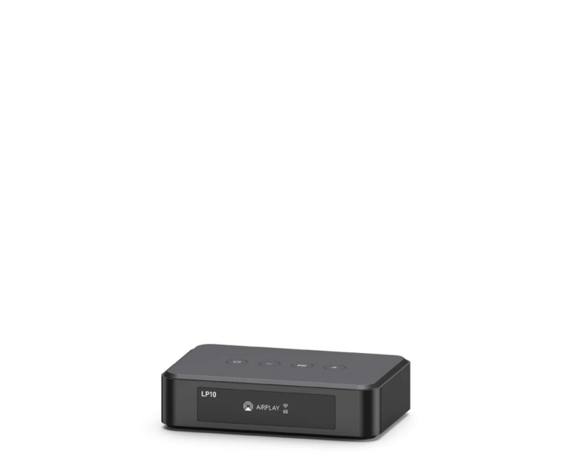 - AirPlay 2 un Google Cast atbalsts — ļauj straumēt saturu no Apple ierīcēm vai Android/Chromecast lietotnēm tieši uz LP10.