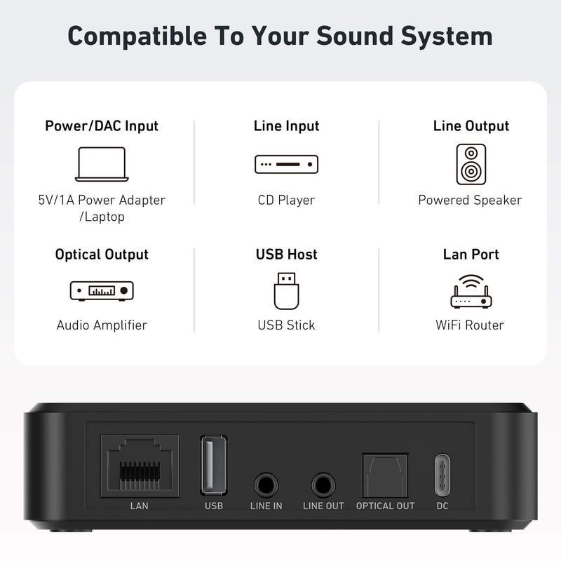 Plašs straumēšanas atbalsts: darbojas ar Spotify, Tidal, Qobuz, Deezer, interneta radio, NAS un citām mūzikas datubāzēm vai mobilajām ierīcēm.